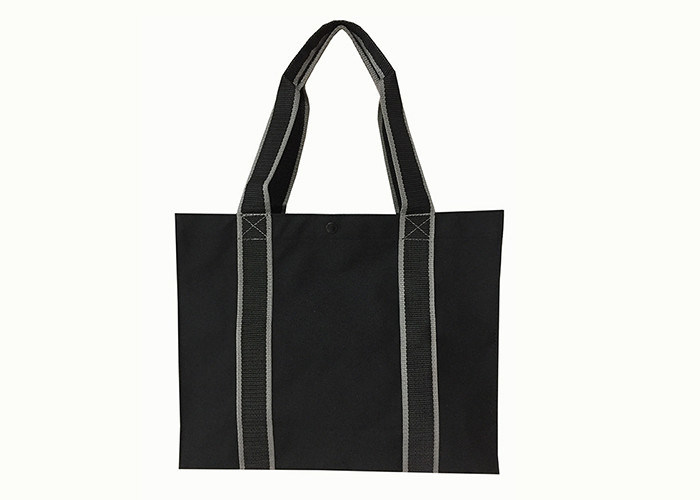 ब्लैक 600 डी पीवीसी बैकिंग इको टोटे बैग पीपी वेबिंग हैंडल नीचे तक