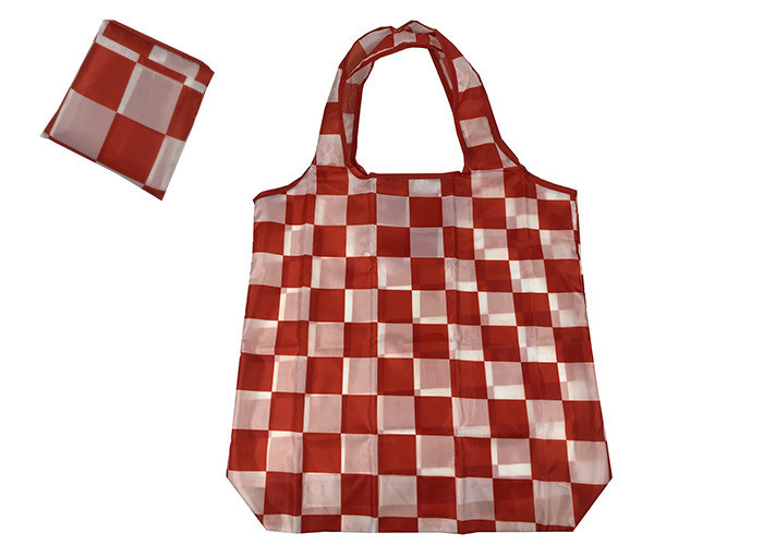 लाल-सफेद वर्ग तह 190t पॉलिएस्टर तह जेब पुनः प्रयोज्य तह बैग