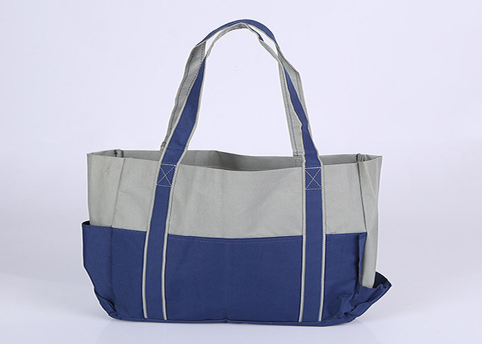 कस्टम दो टोन रंग पॉलिएस्टर पुनः प्रयोज्य बैग 600D बाहरी जेब के साथ