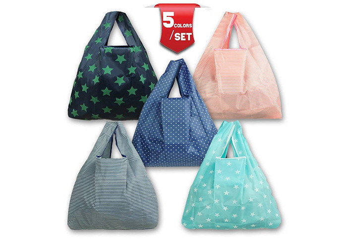 100% 210D नायलॉन फोल्डेबल टोटे बैग पांच अलग-अलग शैलियों के साथ पुनर्नवीनीकरण