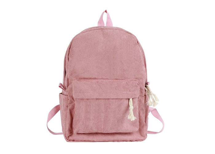 स्कूल और आउटडोर के लिए कस्टम 100% कपास कॉर्डवॉय गुलाबी बेज बैकपैक