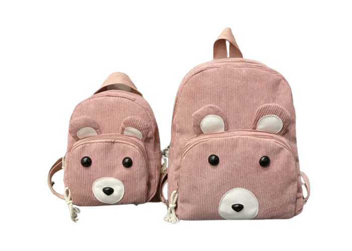 कॉटन किड बैकपैक कॉर्डव्यूरी बैग के साथ आकस्मिक शैली और प्यारा भालू डिजाइन